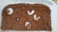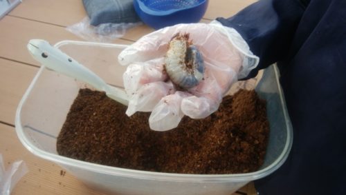明らかに11月のマット交換の時より大きくなっていた!!そして掘り出す最中のマットの中はうんちだらけ!!!凄い食べていた!!というかマットの上にうんちが山盛りになったらマット交換という目安は、我が家のカブトムシの幼虫たちには違うようで、マットの中に大量に出すタイプのようだ。結局やはりうんちだらけのためマットは処分となった。