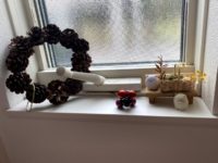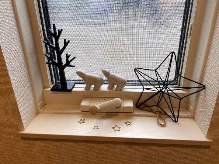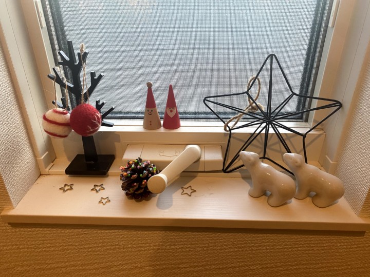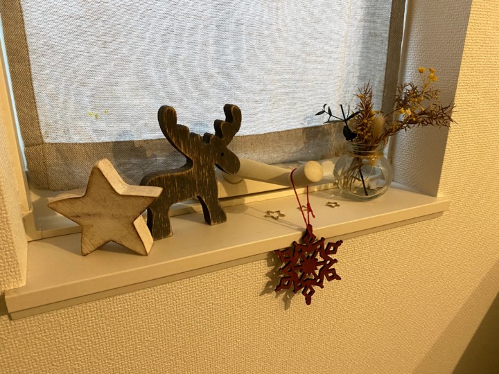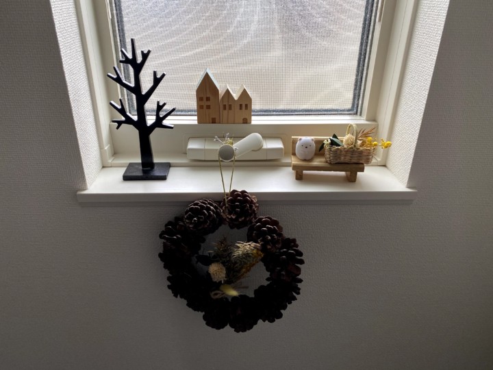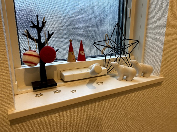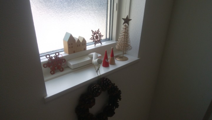飾るところは、玄関の窓、階段の窓、キッチン前のカウンター、洗面所の窓、トイレの洗面台、トイレの窓、二階のトイレの窓。基本はこんなもんだ。