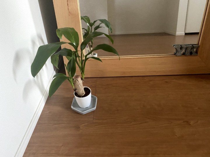 〇玄関の観葉植物は、100均。下の容器も100均。