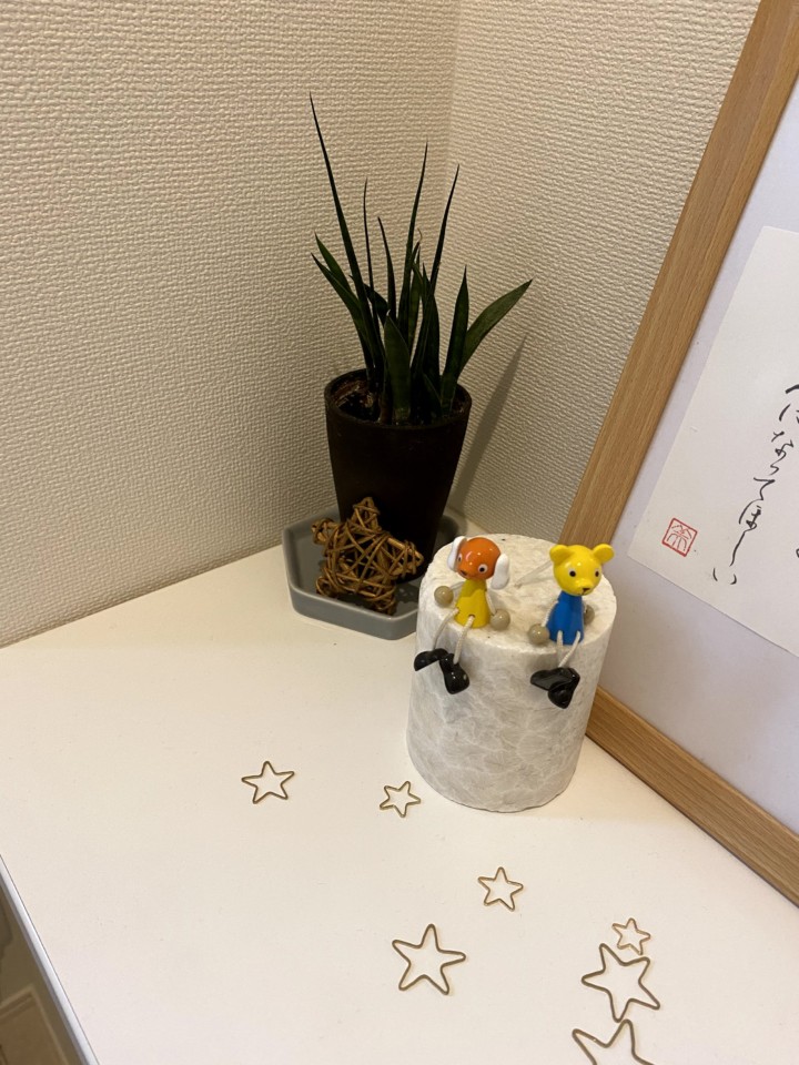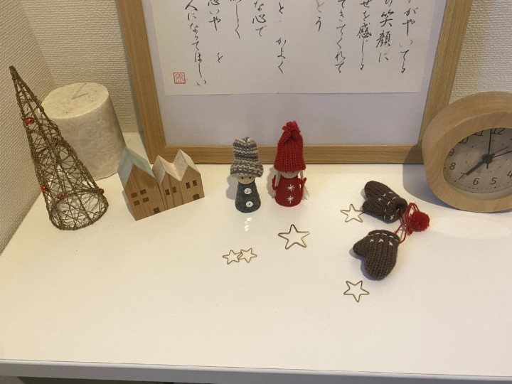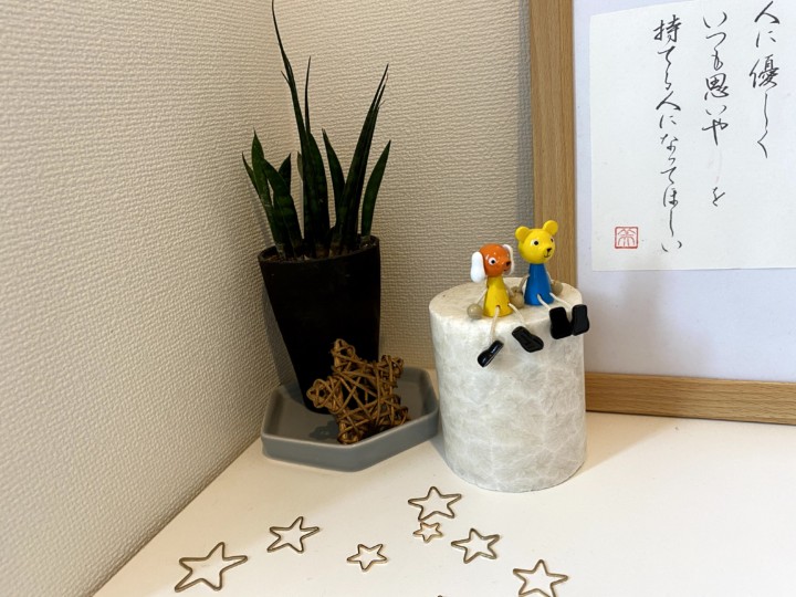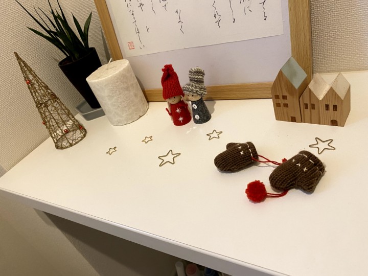 こんな感じでところどころに雑貨をちりばめている。でもベースとしている観葉植物や星の飾りはいつも同じ。ただ気分で場所を変えて、気分で変身させている。娘が小物たちを移動していることもある(^^)さすが女子♡