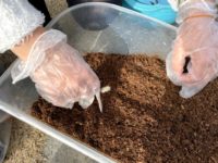 幼虫たちをマットの上に乗せる。すぐにもぐっていく。完成。