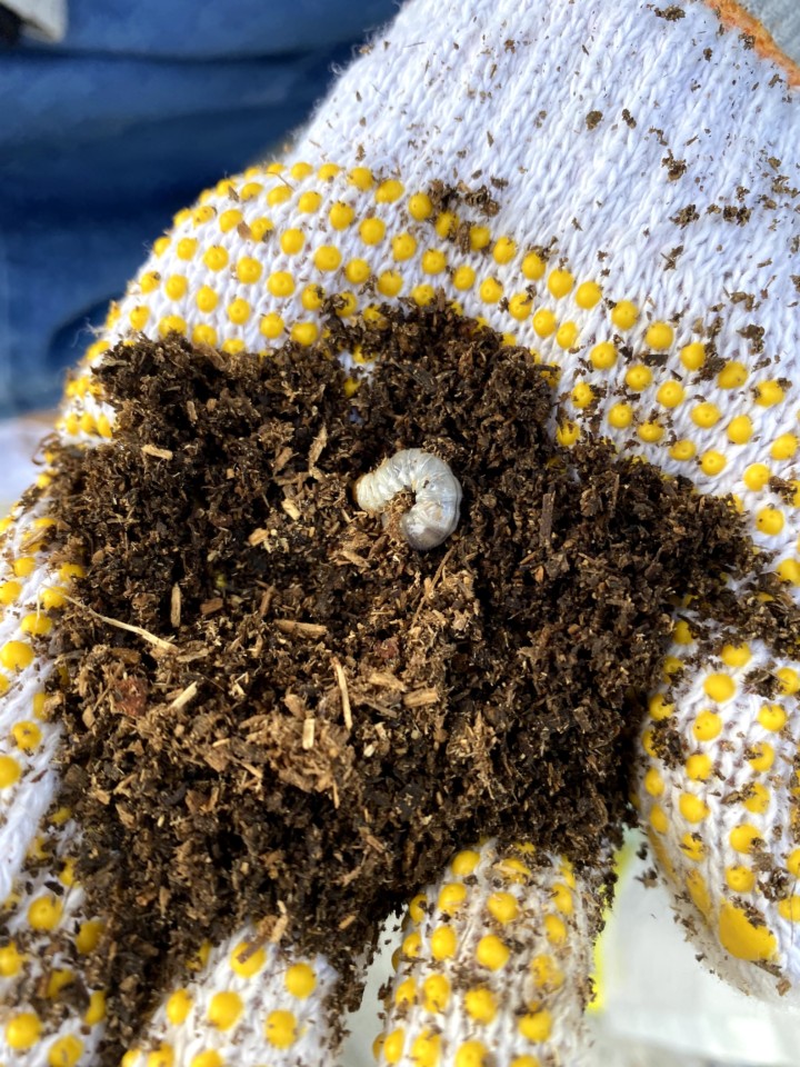 中からクワガタを取り出してみると、とっても小さなクワガタの幼虫が(^^)