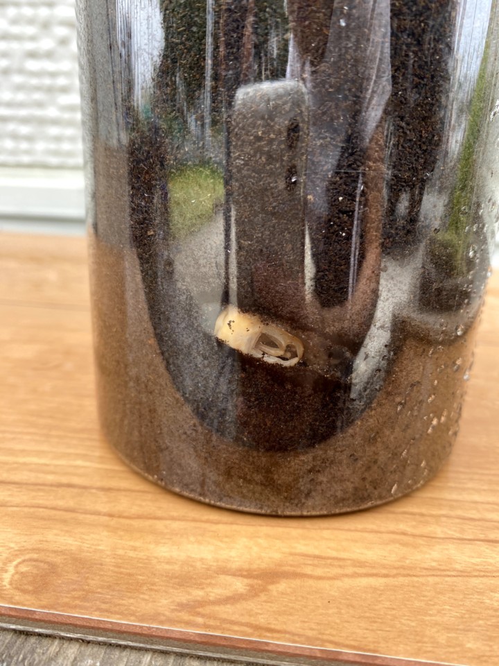 クワガタの虫かごは小さい筒に入っているので幼虫たちが窓際というか虫かごの側面で生活してくれていることが多く生きていることが確認できた。