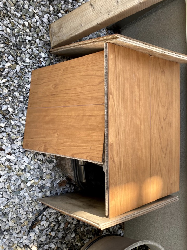いままで通り家の玄関に入れておくと湿気によってカビてしまうかもしれない。カビたら昆虫マットを入れ替えれるならいいが、そういうわけにもいかない。だから、思い切って庭で飼育することに。なるべく日陰の場所に置き、周りを板で囲んだ。