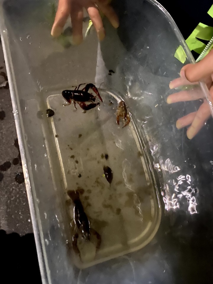 ザリガニを見つけたときは大興奮!!まさかの自宅まで走って網と大きい虫かごを取りに行くことになるほど。そして、数匹のザリガニたちを連れて帰る。
