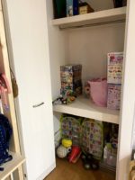 使っていないおもちゃは2階の子ども部屋へ!!今使っているおもちゃはすぐに取り出せるようにした!!毎回娘に「リカちゃん人形取って!」と言われる苦悩から解放!もっと早く見直せばよかった。
