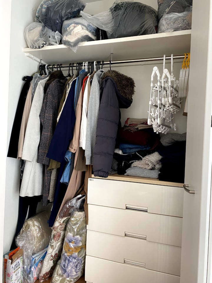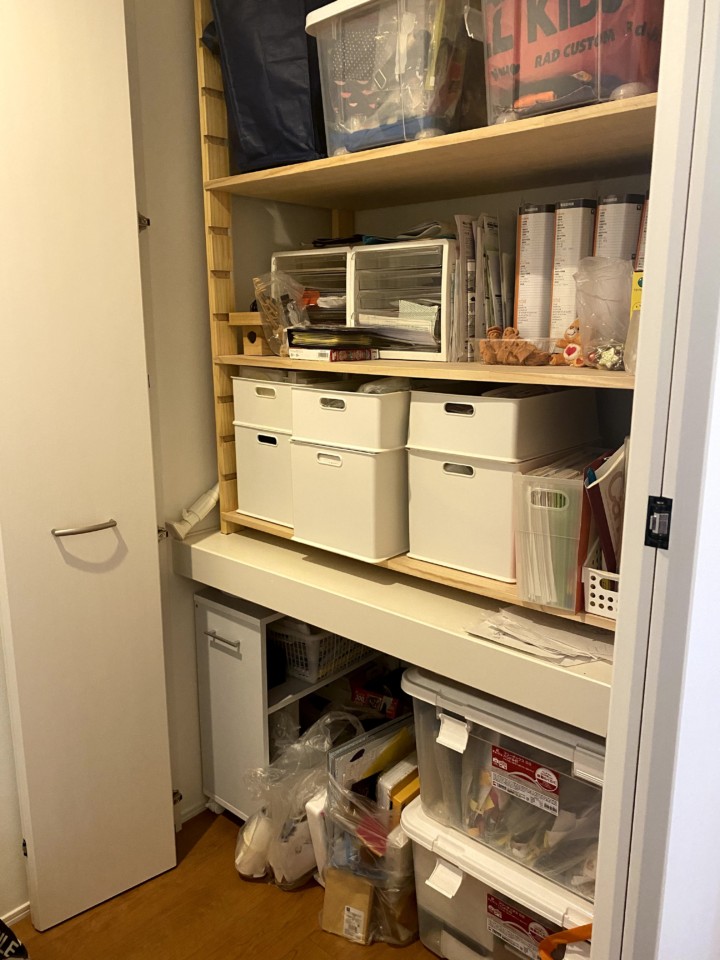 家の中の置けるところに季節ものの飾りを飾るのがブーム。でも飾りを入れる入れ物も同じ季節のものだけど片付ける時期がズレると入れる袋に統一が出なかったり、二つの袋になることでなくしてしまうことも。また、工作やお絵かきが大好きな子どもたち。上手と思った作品は「お母さんの宝物行き」と言って毎回もらうのだが、お母さんの宝物行きはこのクローゼット。かわいそうなくらい積み重なっていて、とても宝物扱いを受けていない。。まだまだ片付けが続きだが、とりあえずスッキリさせた。