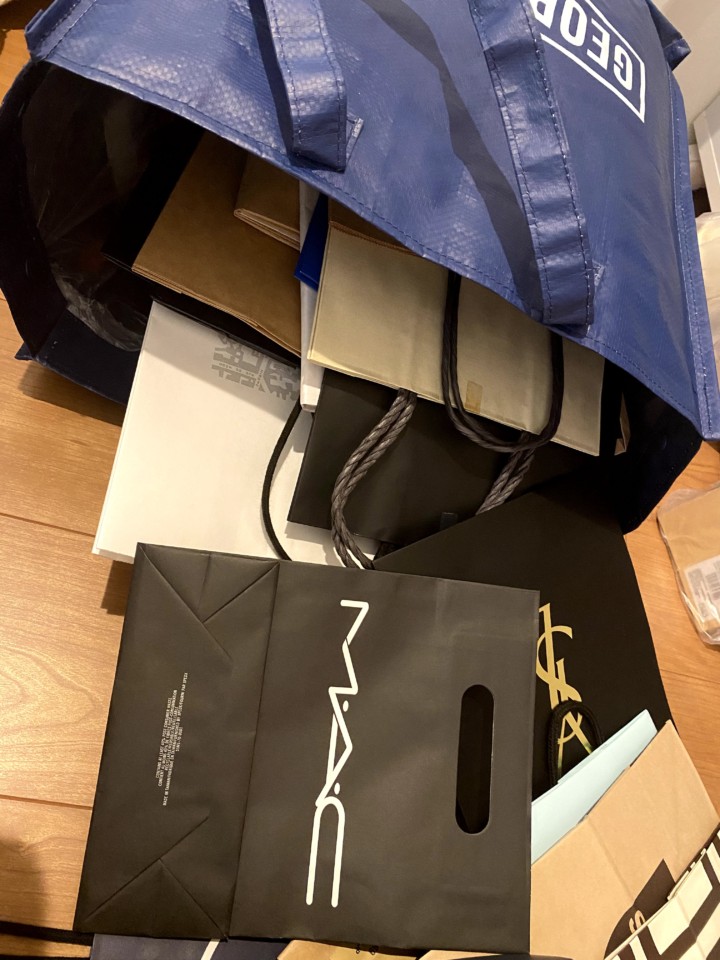 綺麗な紙袋は何かと使うのでとっておいている。でもその袋も盛りだくさん。改めてみてみると、こんな袋あったんだとときめく袋もあれば、なんでこの袋を残したのかと謎な袋もでてきた。
