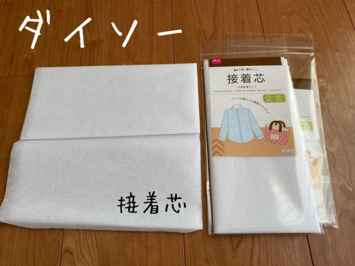 ↑こう見るとダイソーばかり(*´з`)接着芯はセリアのものと見比べたが今回はサイズも大きくて使いやすい薄さだったダイソーのものにした。