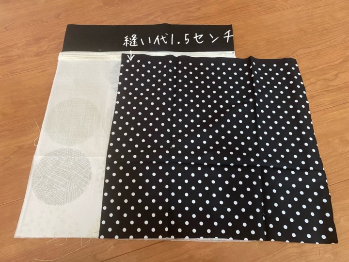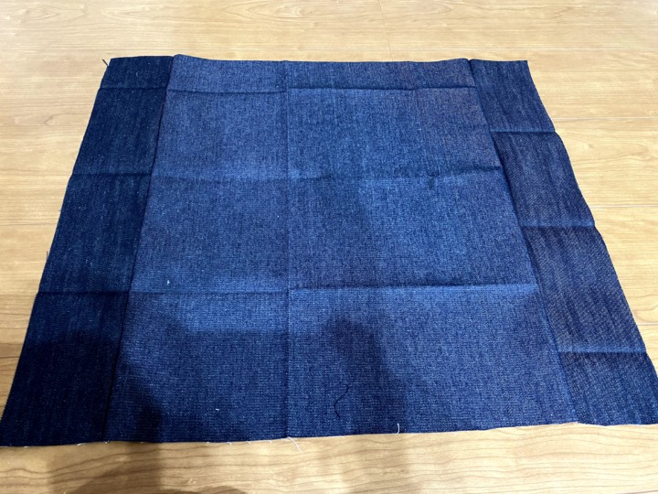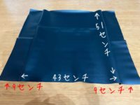 ↑縦51cm横43+9+9cm(両横側の幅部分9cmの布を忘れてしまっていたため後で追加して縫った。)