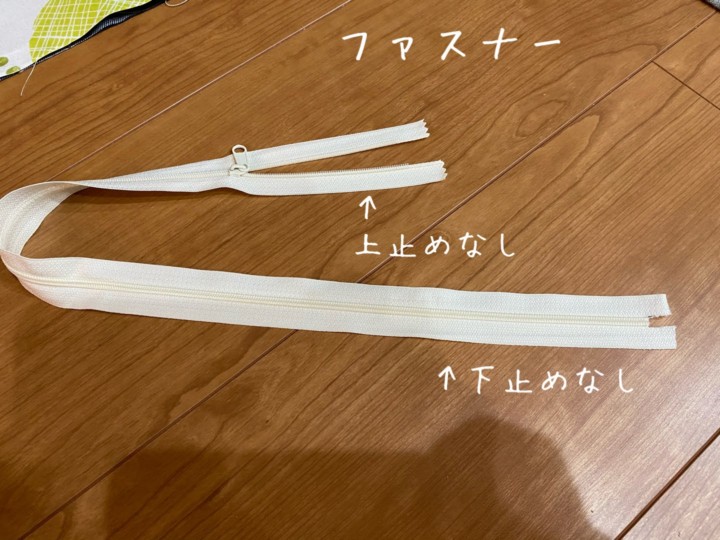 5.ファスナーの左右の止めは針と糸でしっかり塗っておく。ファスナーの金具が取れないように。