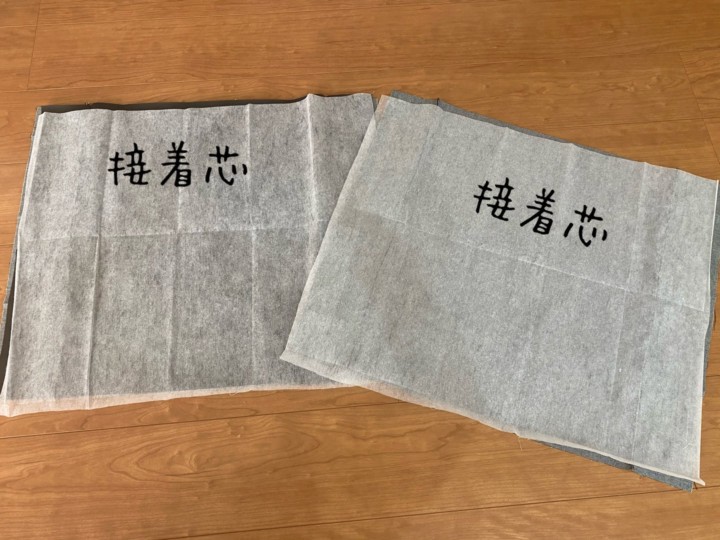 8.部分部分が出来てきたので、次は接着芯を貼り付けていく。内側の前面と後ろ面。あと、外ポケット(スリッパ入れ)の裏面。