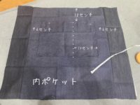 6.内ポケット裁断。歯磨き入れが入る用とハンカチやメモ帳など入る用を作ることに。