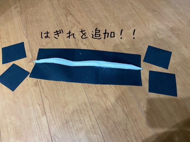 2.底面の裁断。縦20cm、横51cm。(これも幅部分忘れたため追加して縫ったもの。)
