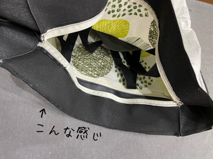 23.ファスナー部分が飛び出るので中に押し込む。