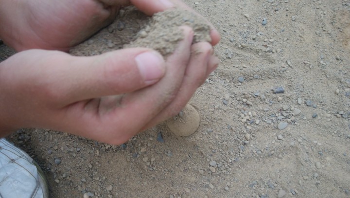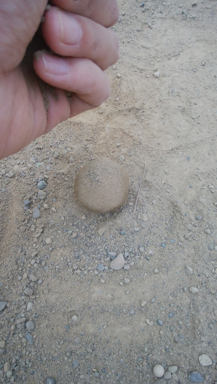 泥団子と言っても意外と奥が深く、普通の茶色い砂や土、小石が入った砂や土では、水を少し加えて丸い形を作れたとしても、すぐに潰れてしまうのだ。
