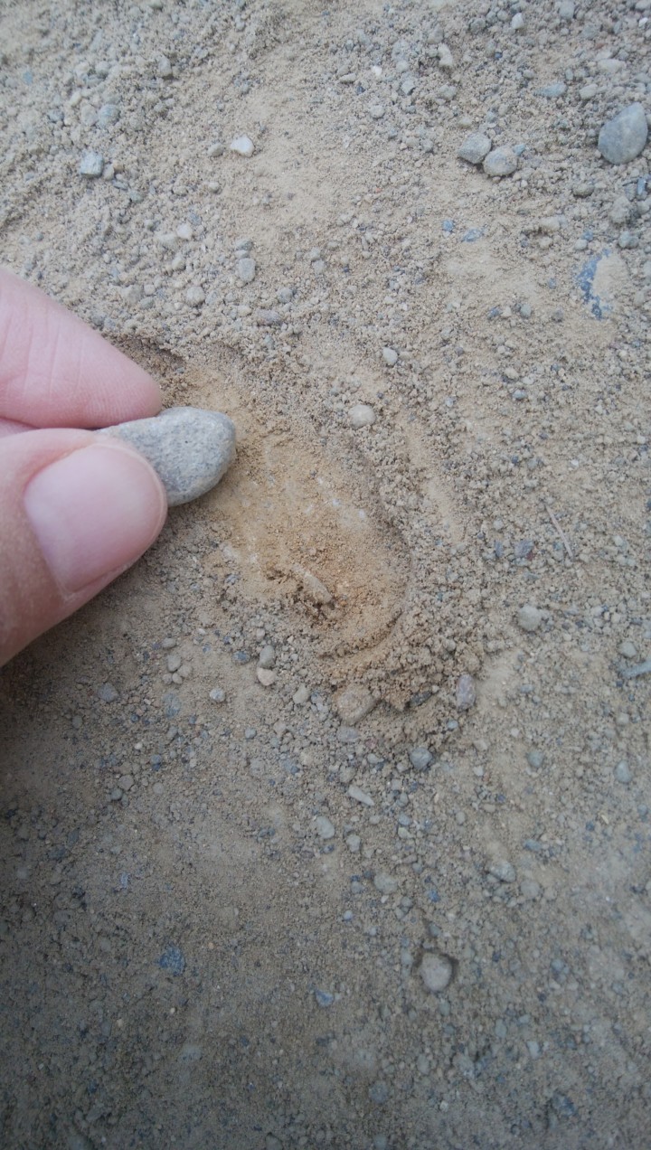 1.まず広場の土を少し掘ってみる。黄土色っぽい赤茶色っぽい色の土が出てきたらそれが赤土!!赤土の上の砂や土や小石はササッとよけたあとに掘ると余計な小石を気にせず赤土だけを取りやすくなる。
