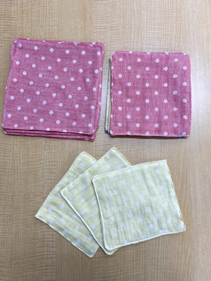会社で経営している保育園の先生用のマスクを作ることを頼まれた私。その生地の残りで保育園で使うガーゼハンカチを作ることに。