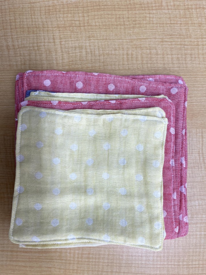 ガーゼハンカチはあればあるだけ助かると言われ、サイズは3種類になってしまったが、とにかく正方形のガーゼハンカチ11枚を作った。