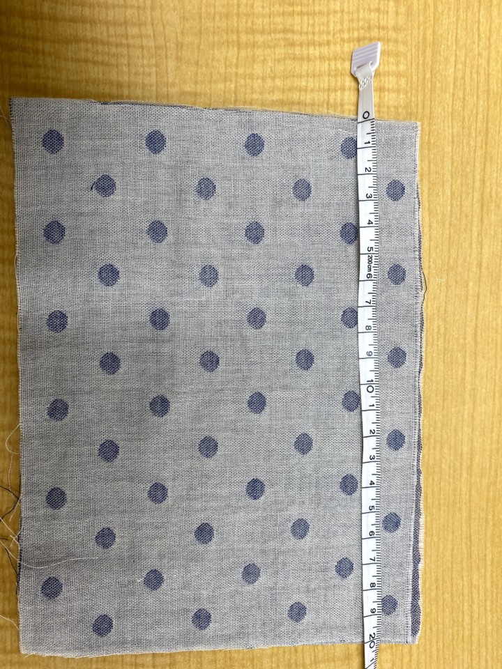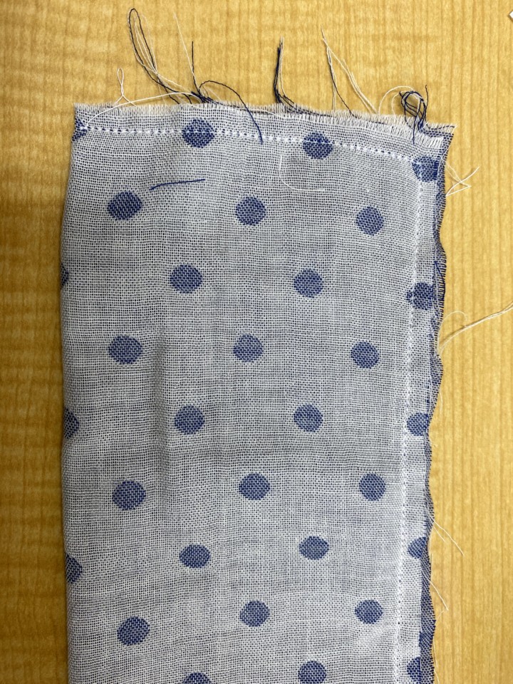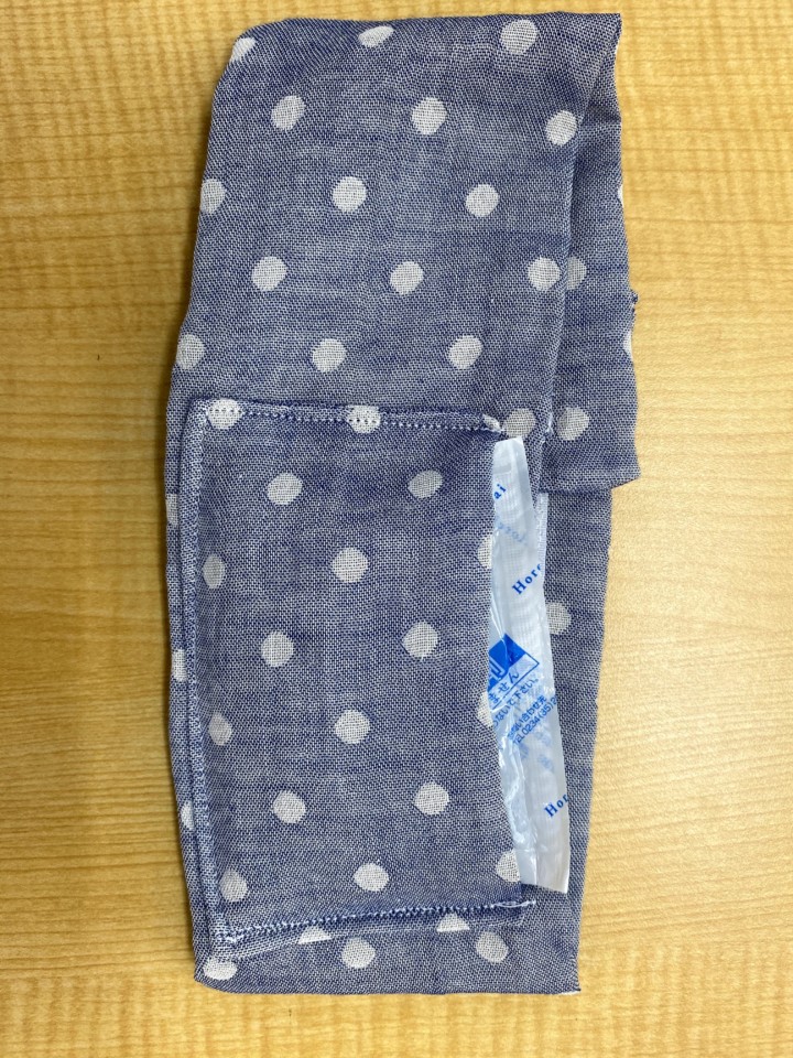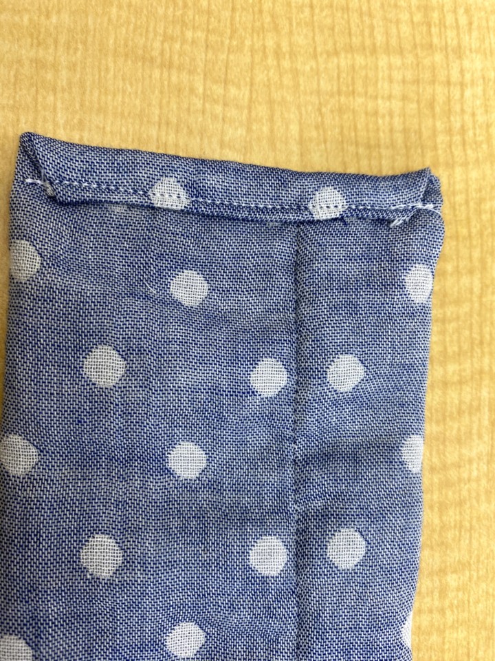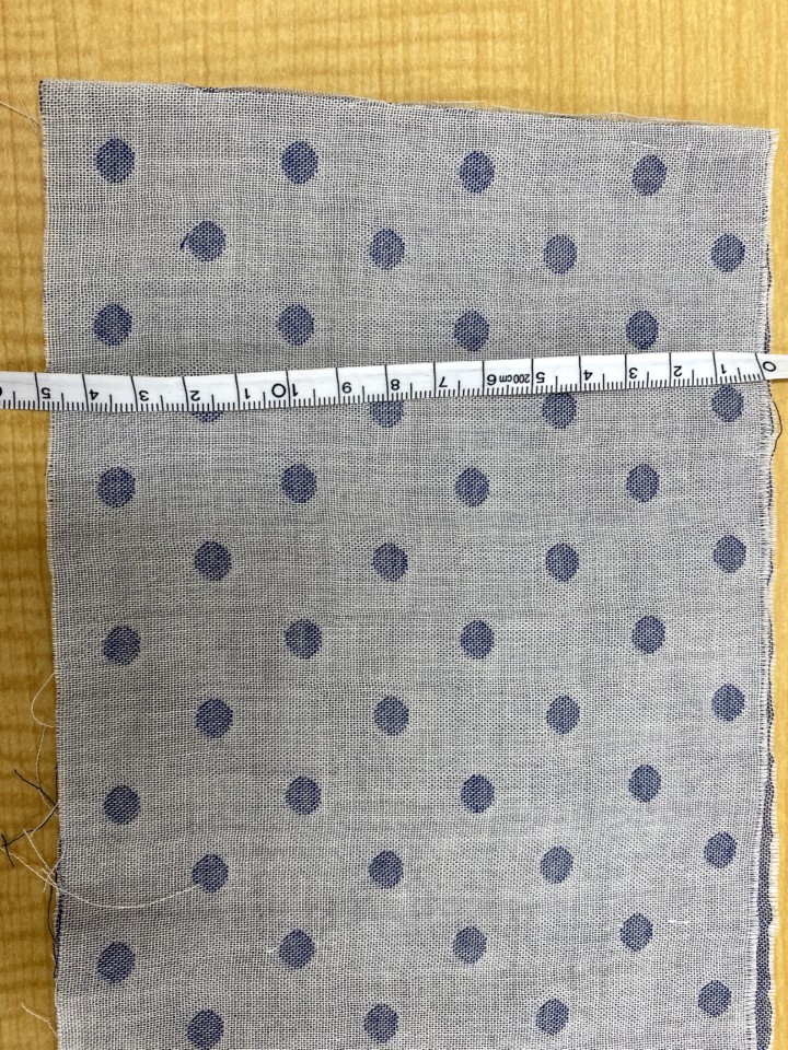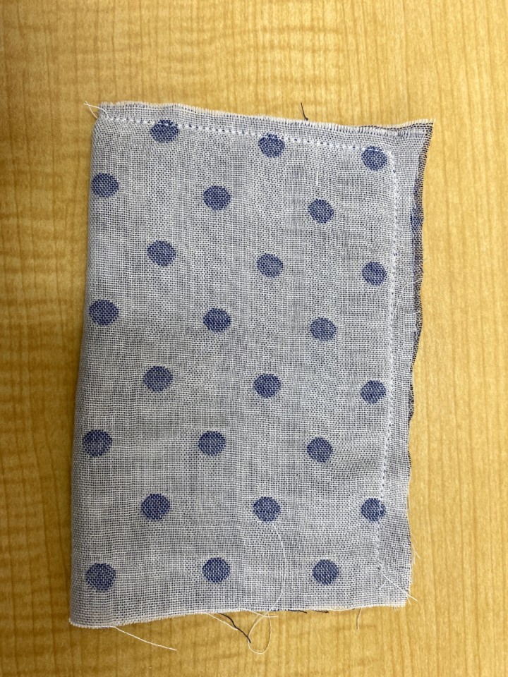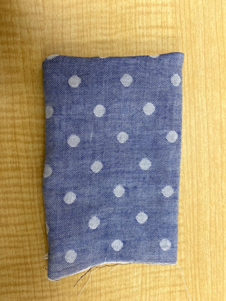 1.ガーゼを縦長に裏面に折る。そして、4cm程あけて一周縫う。表面にひっくり返す。