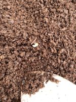 卵しか入れていなかった虫かごにの土を掘ってみると、小さな幼虫発見!!しっかり卵から幼虫になっていた!!