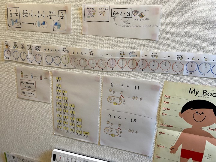 子どものために手をかけることと、苦手部分を何度も復習すること。これを踏まえ、自己流で書いた紙を貼ってみた。