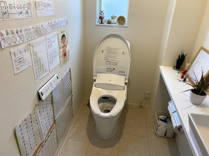 とは言っても壁に貼るスペースがない我が家。こうなったらトイレの壁に!