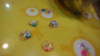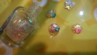 今度は大胆にラメ入りマニキュアを一気にドバっと出してみる。ぷっくり膨らんだマニキュアにビーズを飾る。