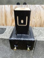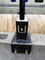 そして、穴に入れ立たせてみる。意外と穴がちょうどいいサイズで、手で押さえなくてもしっかり立つ。でも年のため、お向かいさんのコンクリートを少し借り、紐でくくりつけさせていただく。