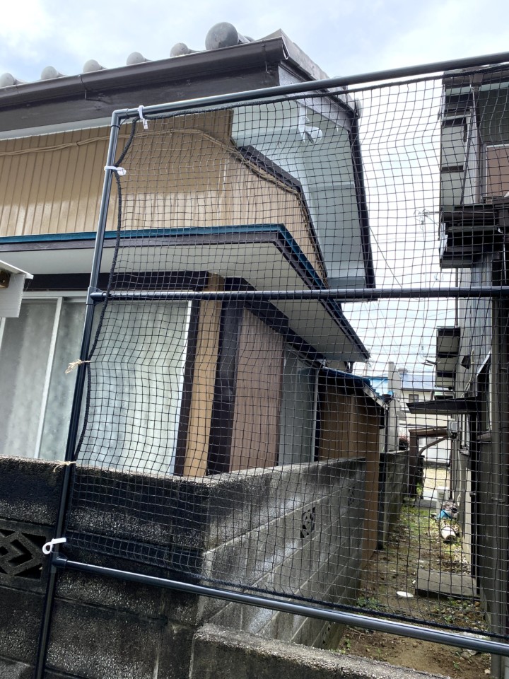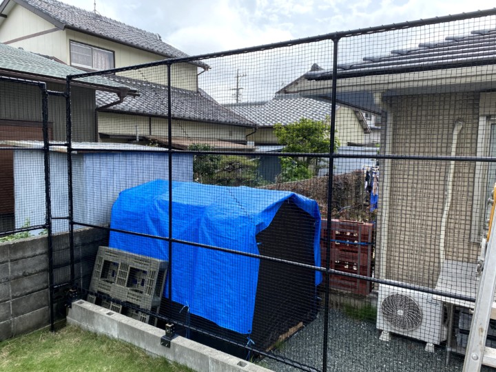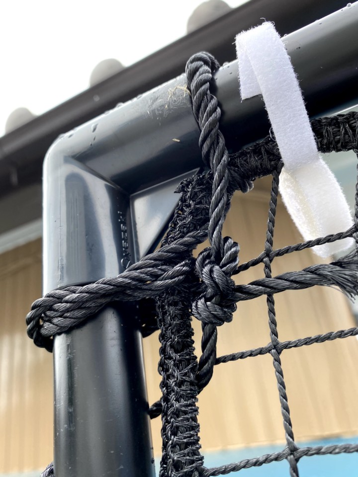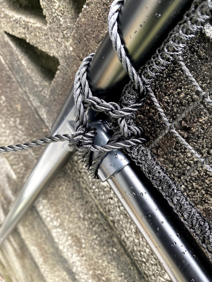 ネットのサイズが本当に大丈夫かつけるまで不安だったが、思った以上にネットが伸びるので、紐で調節ができた。ネットはとりあえず結束バンドで仮止めしていく。範囲が広いので結束バンドをしっかりつけて固定していく。