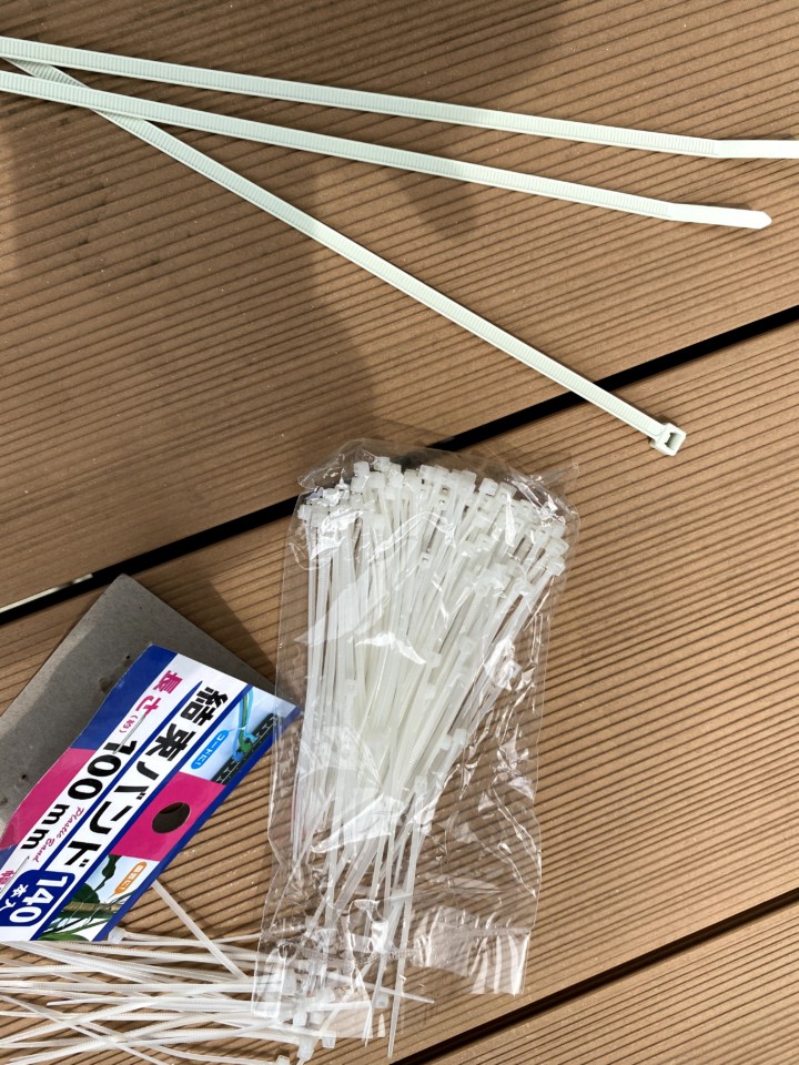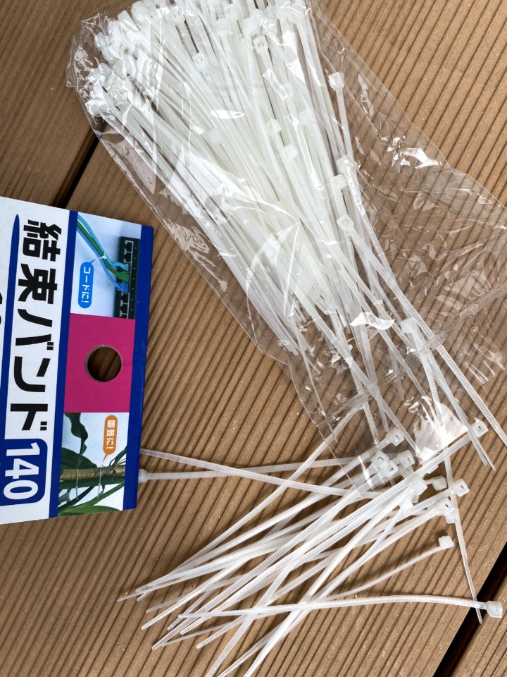 結束バンドは100均のものだと短すぎた。ホームセンターで購入した長いものを使用した。