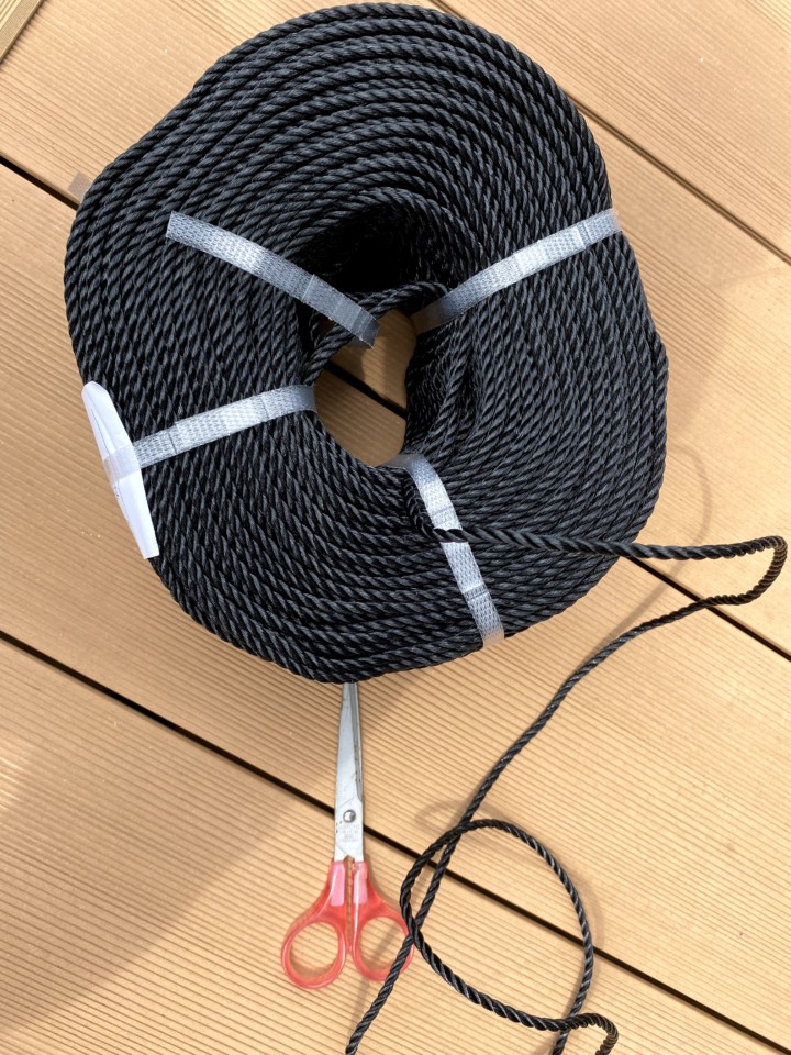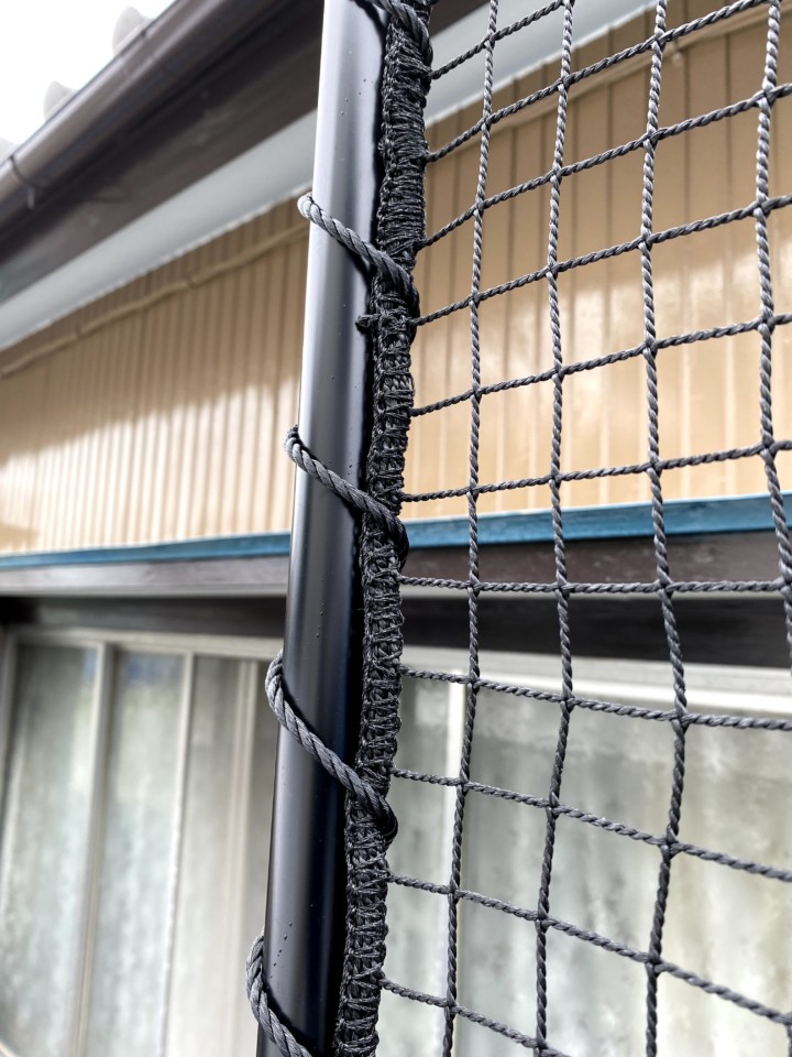 ネットのサイズは、鉄パイプの内側のサイズを測る。外側にしてしまうと紐を巻きつけた時、鉄パイプに紐がもりもりに巻かれてしまい、カッコ悪いので、必ず鉄パイプの内側のサイズにした方がよい。
