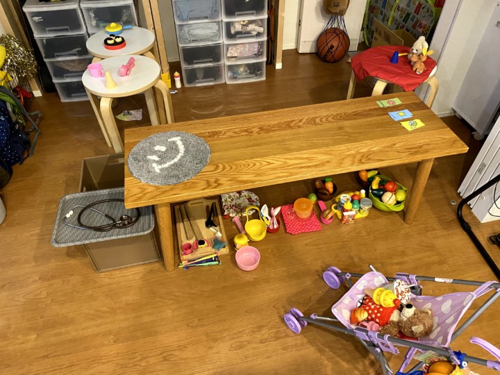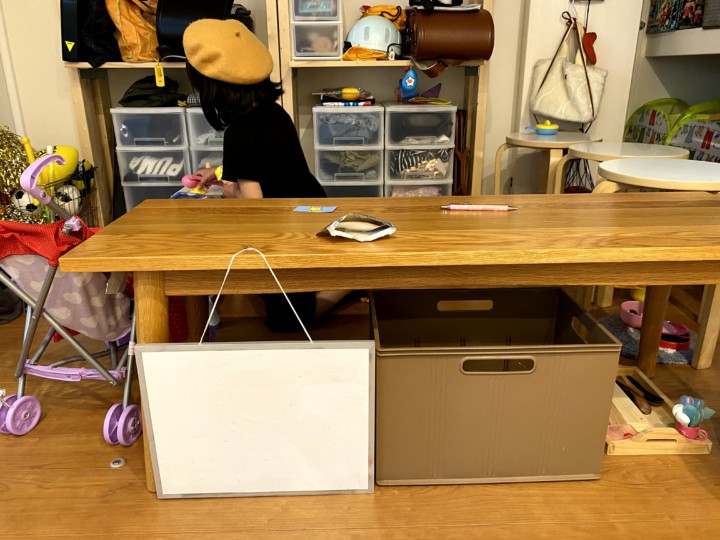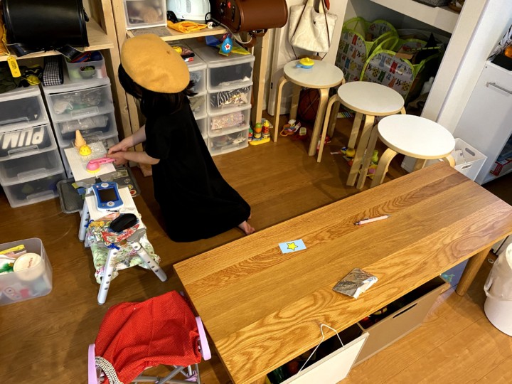 私が夕飯の支度をしている最中、せっせとお店屋さん作りをしている娘。