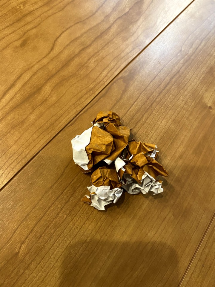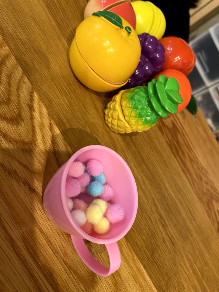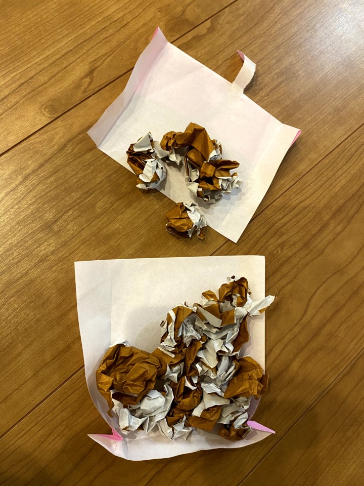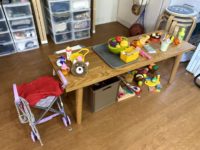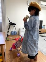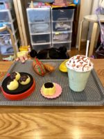 本当はお金のやり取りをしっかりしたいのだが、娘にとってそこは全くもって適当!!偽の千円札を渡すと、偽の一万円札のお釣りが返ってくるというめちゃくちゃなお店屋さん。でも娘はポイントカードやお釣りのやり取りが楽しいようだ。テイクアウトもしてくれるのだ。