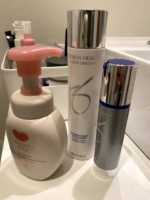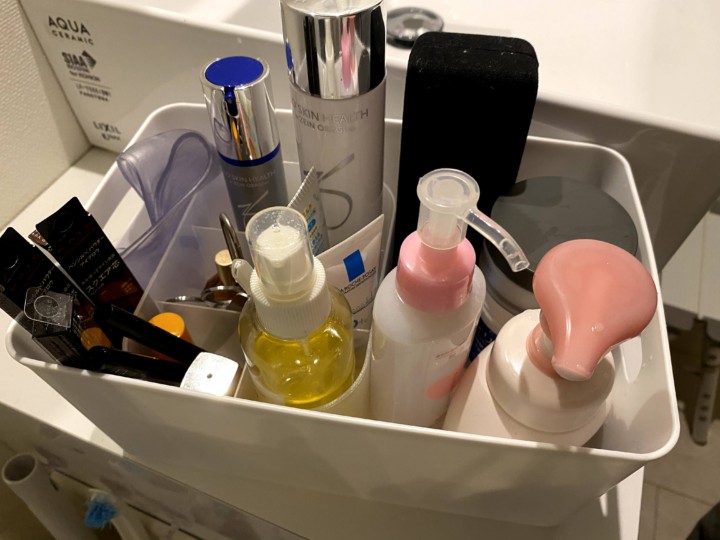 起床。洗顔、スキンケア、ヘアオイル、コンタクト、お手洗い。