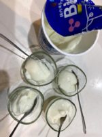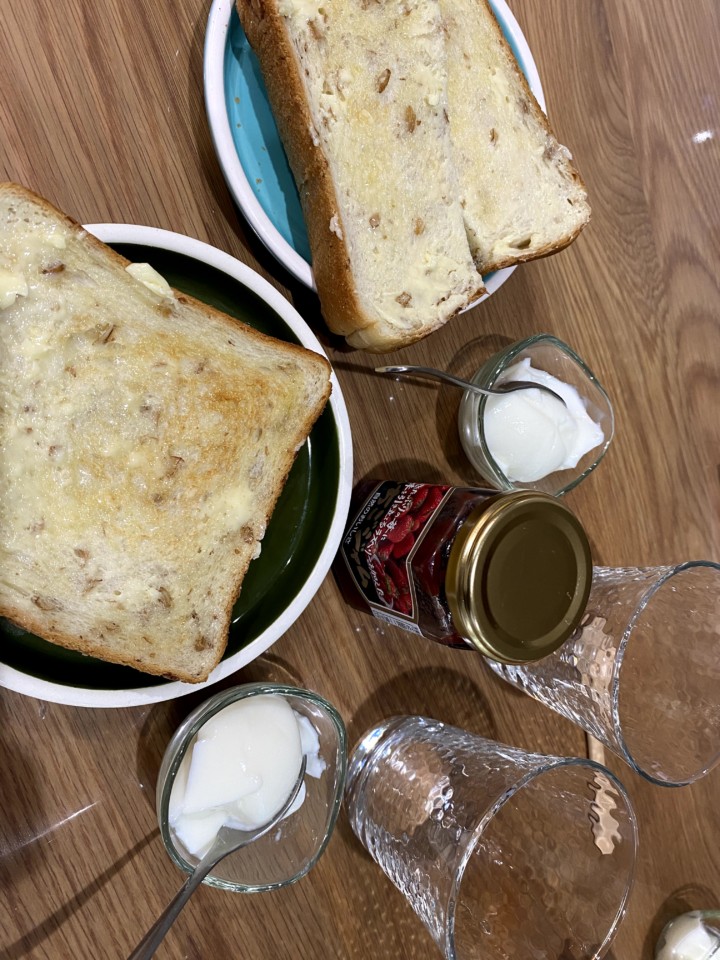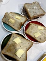 子どもたちと一緒に朝ご飯&ヨーグルト。食パン一枚では足りず、各自その後みかんを食べたり、ちびマフィンを数個食べたりしている。とりあえず7:00までには食べ終われるようにする。寝坊助の夫の分はサランラップ。