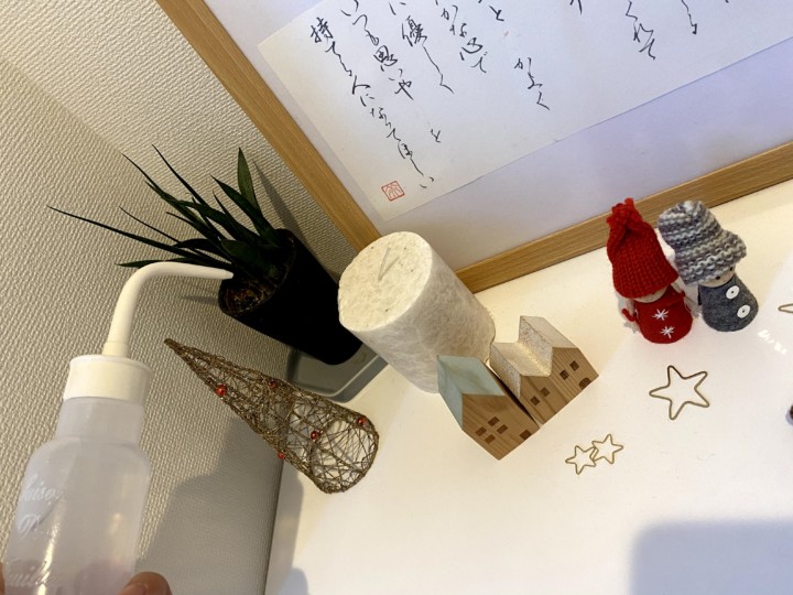 身だしなみが気になる息子は寝ぐせ部分に水をつけて、帽子をかぶって寝ぐせを直す方法をあみ出し、毎朝帽子をかぶっている。
