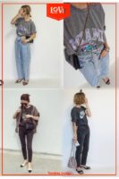 ↑これまたハードルが高いロゴT。小物使いでこんなにオシャレに着こなせるようだ。ヘアスタイルもとっても重要ポイントになりそうだ。ん~難しそう!!でも参考にしたいファッションだ!!