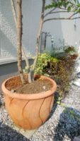 我が家のお家のシンボルツリーは、ご近所の仲良くしてもらっているおじさんからいただいた木。何という木か忘れてしまった(^^;でもこんあ大きな植木鉢付きで今ずっと元気に育ってくれている。春夏は黄緑や緑や黄色の葉を付け、時々幼虫やかまきりやバッタやちょうちょなどいろんな虫もついている。秋冬は葉っぱが落ち枝だけになる。でもクリスマスシーズンはこの木に飾りをつけて立派なクリスマスツリーに変身。大切な我が家のシンボルツリーだ。