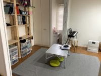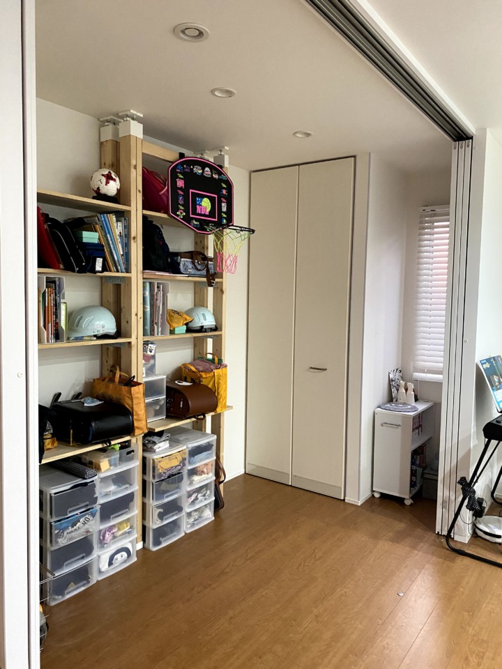 ランドセル&洋服&小学校グッズもろもろ置き、娘の大好きなピアノ、補助用机(やったことないがキャンプ用)、筋トレバランス半ボール(いつの間にかクッションの代わりになっている)こんな感じ♪これが限界かな(^^;