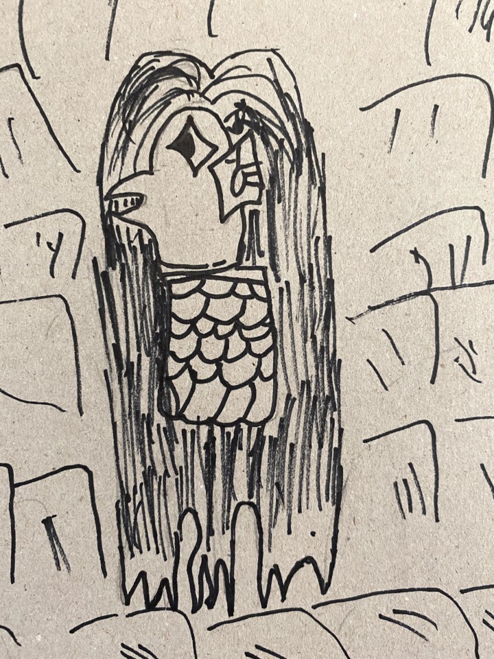 息子が描いた「アマビエ」さん。これをつけてコロナ対策!!
