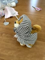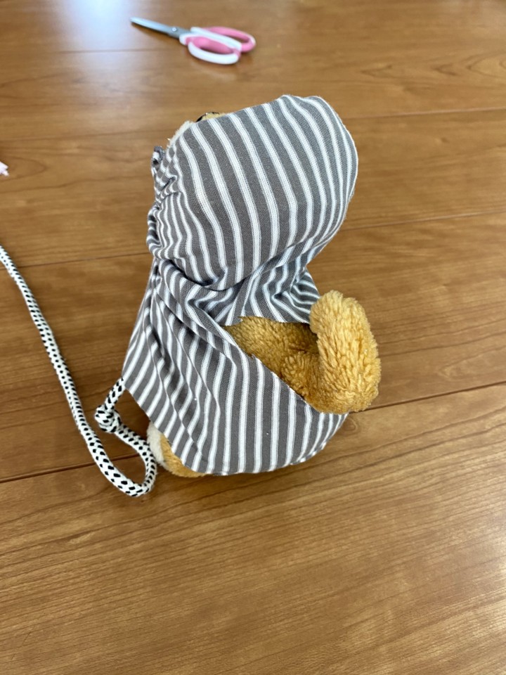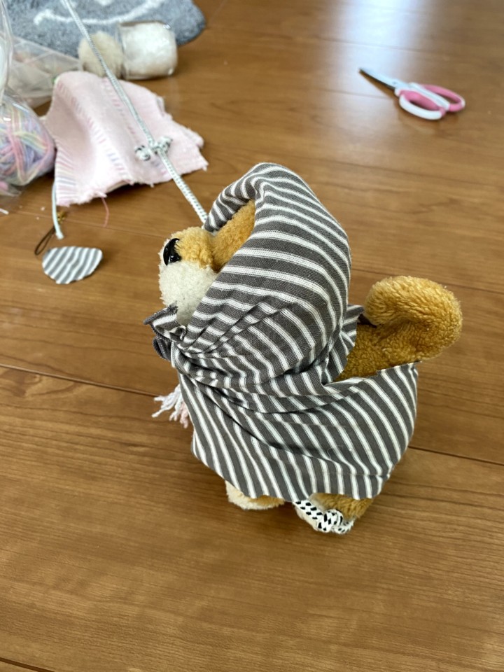 そしていらなくなった布をかぶせ、トキの洋服を作っていた。ペットショップへ行くと当たり前のようにペットの洋服が売っていて、洋服を着るのに憧れているのかな。