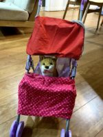 今度は女の子のぬいぐるみを入れて遊んでいたことのあるベビーカーを持ってきて、そこにトキを乗せていた。すると広げてあった牛乳パックを持ってきて、紐やテープや布などを使って屋根をつけていた。さすがに上手く出来ず、私も手伝ったのだが、屋根付きのベビーカーという発想は、今時のペット事情だなと思った。サービスエリアなどで素敵な夫婦が大事そうにベビーカーを引いていると思ったら、可愛いワンちゃんが2匹顔を出すという光景をよく見かける。娘もそれがとても印象的だったようだ。