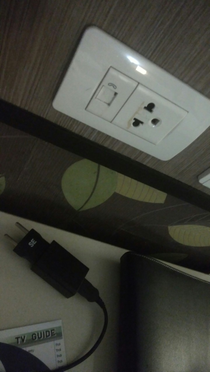 コンセントはこの通り日本の充電器でもバッチリ繋げられるタイプ。HISでもらったホテルの案内用紙には「コンセントの種類は、OとSEタイプ」と書かれていたが、大丈夫だった。
