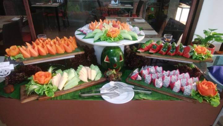 本当は外食する予定だったが、娘が現地の独特な匂いを受け付けず体調不良だったため、ホテルで夕食をとることに!でもちょうどハロウィンということで、凄く可愛くて面白くて素敵なディナーだった。味はやっぱり現地の独特な味が多い。