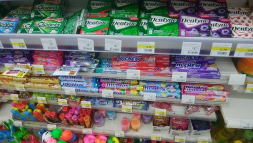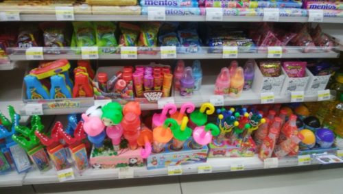 例えばメントスが10バーツだ。しかも珍しいレインボーのメントス。私たちはこれを子どもの友だちのお土産にたくさん買った。お水も安いし安心なため、何本も買って飲んだ。他にもポカリスエットやコーラ、お茶。娘が体調不良だったこともあり、日本のものが本当に心の支えになり、本当に助かった。