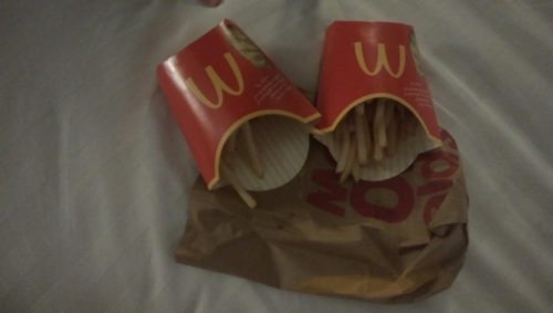 がしかし、ポテトLを二つ頼んだのだが、量!!!!!開けてビックリ凄く少ない!!しかも二つとも適当。まだ食べていないのにこの量!!それだけがガッカリだった。日本にいたら苦情だ。でも娘もしっかり食べれて一安心。