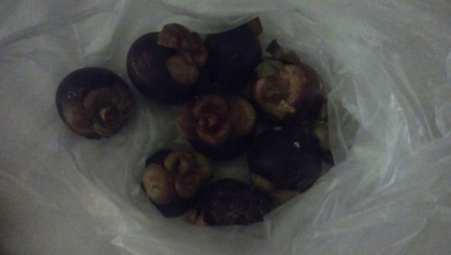 道路沿いの屋台にて、マンゴスチンを購入。さすが果物の女王!!美味しい!!