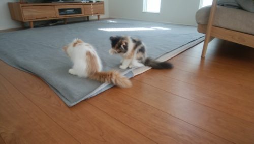 子猫たちは人なつっこかったので、すぐに新しい環境にも慣れることが出来たようで、数日後伸び伸び過ごす二匹の猫ちゃんの写真をたくさん送ってもらった。