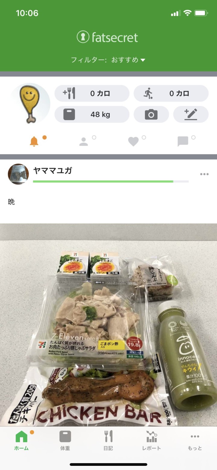 無料アプリにて体重をいつも入力することで、体重に意識が出来た!!また毎回食事も写真を撮りどれだかカロリーを摂取したかも確認が出来たことにより、なるべくカロリーが多いものを意識して取ることが出来た!!